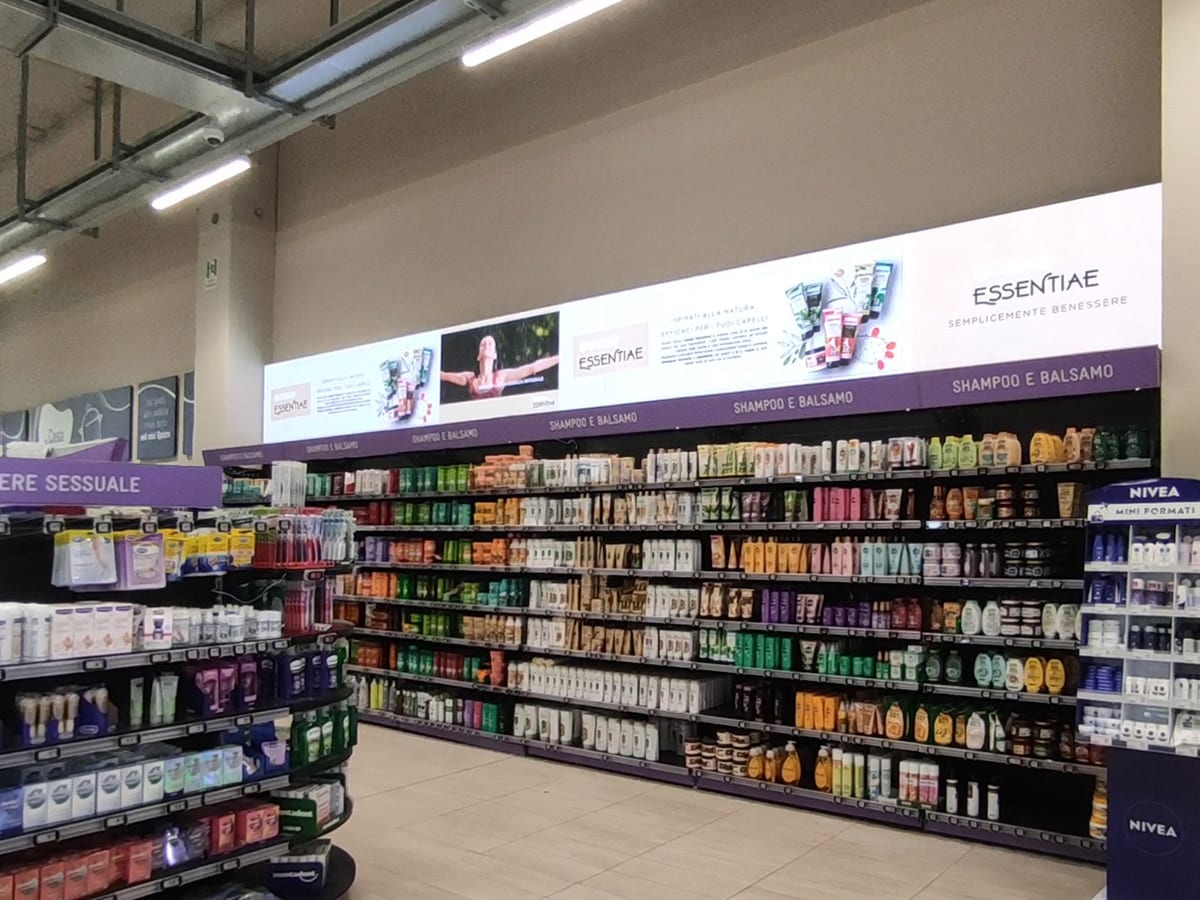 In quest’ottica è nata l’esigenza di inserire all’interno del punto vendita, nell’area benessere, uno speciale scaffale dotato di ledwall integrato che rendesse l’esperienza dei clienti ancora più interattiva e sorprendente.Questo innovativo strumento di comunicazione unisce funzionalità avanzate e design all’avanguardia, trasformando il modo in cui i consumatori interagiscono con i prodotti all’interno dell’ipermercato. Grazie al ledwall integrato, è possibile veicolare contenuti pubblicitari dinamici, offerte speciali e informazioni dettagliate sui prodotti in tempo reale, catturando l’attenzione dei clienti e arricchendo l’esperienza di shopping.